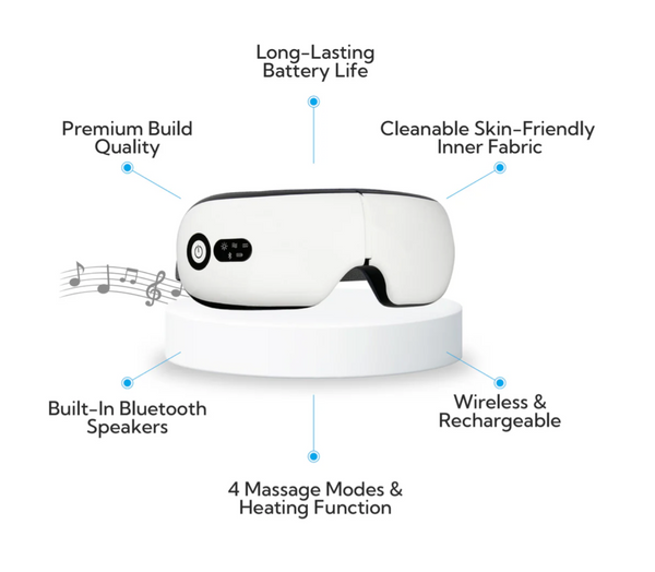 Combines airbag acupressure, vibration and warm compress with music to relax muscles, reduce puffiness and improve focus quickly.